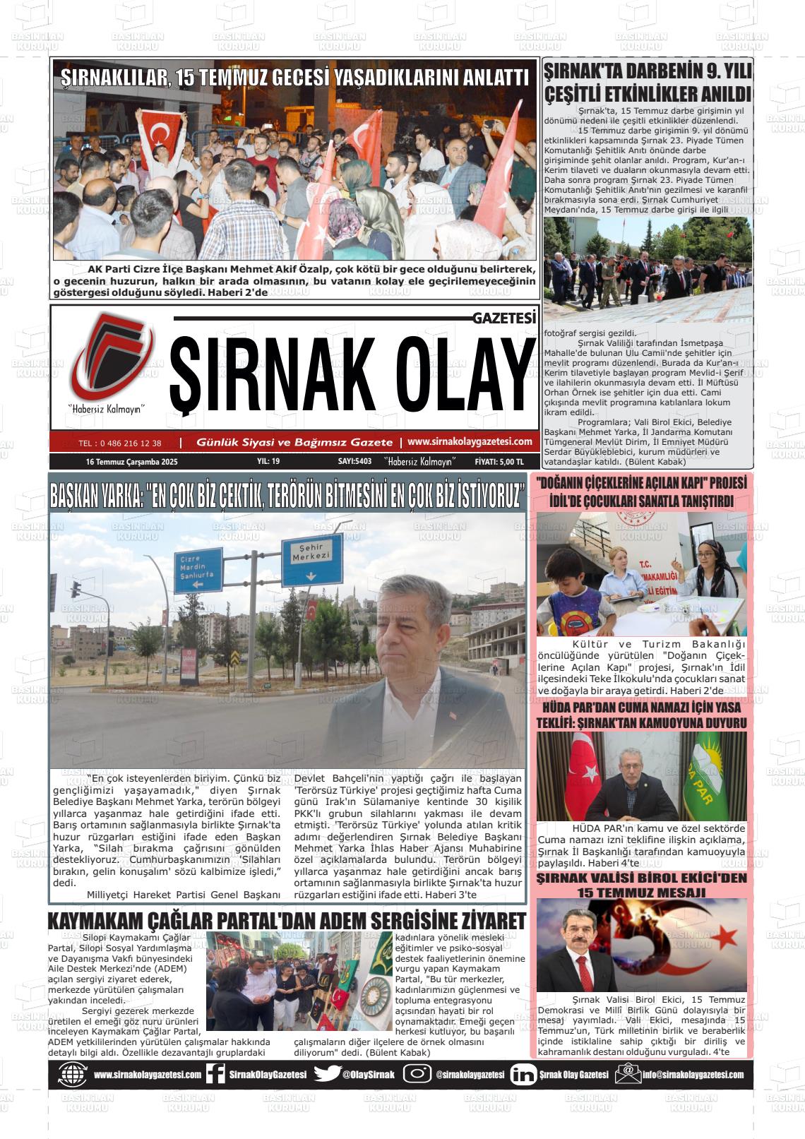 Şırnak Yerel Gazeteleri 04 Şubat 2026, Çarşamba Günü Manşeti