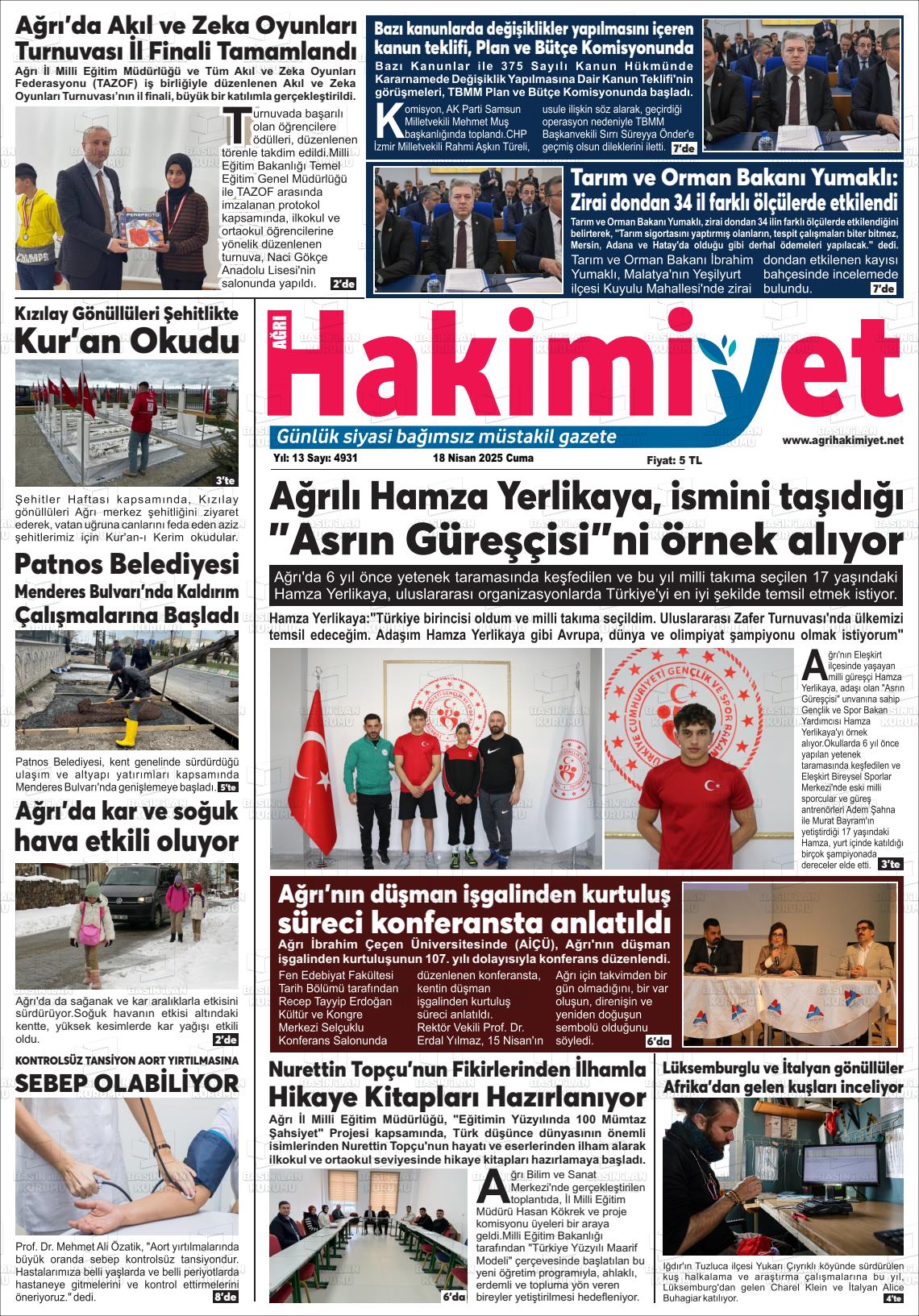 Ağrı Yerel Gazeteleri 05 Şubat 2026, Perşembe Günü Manşeti