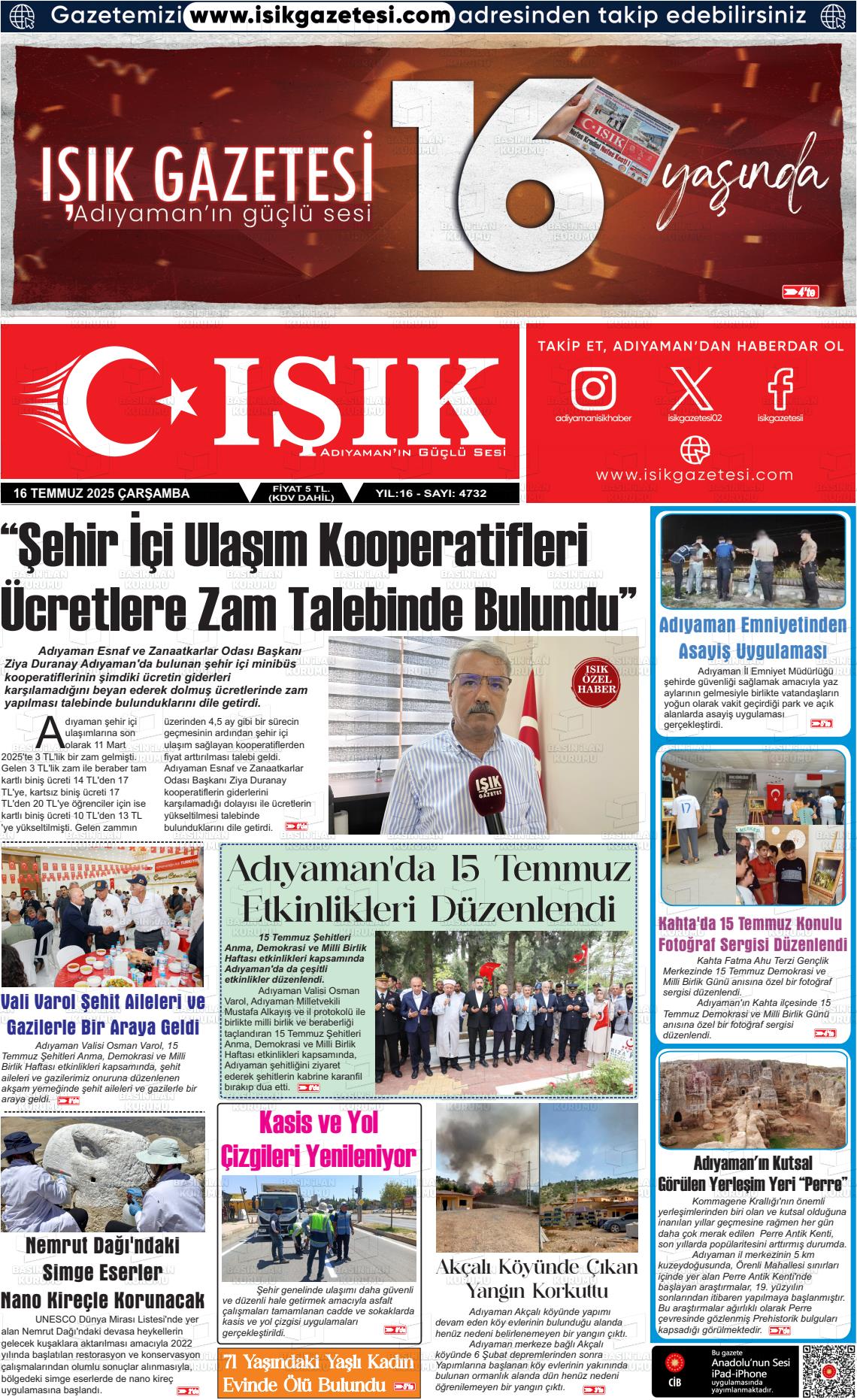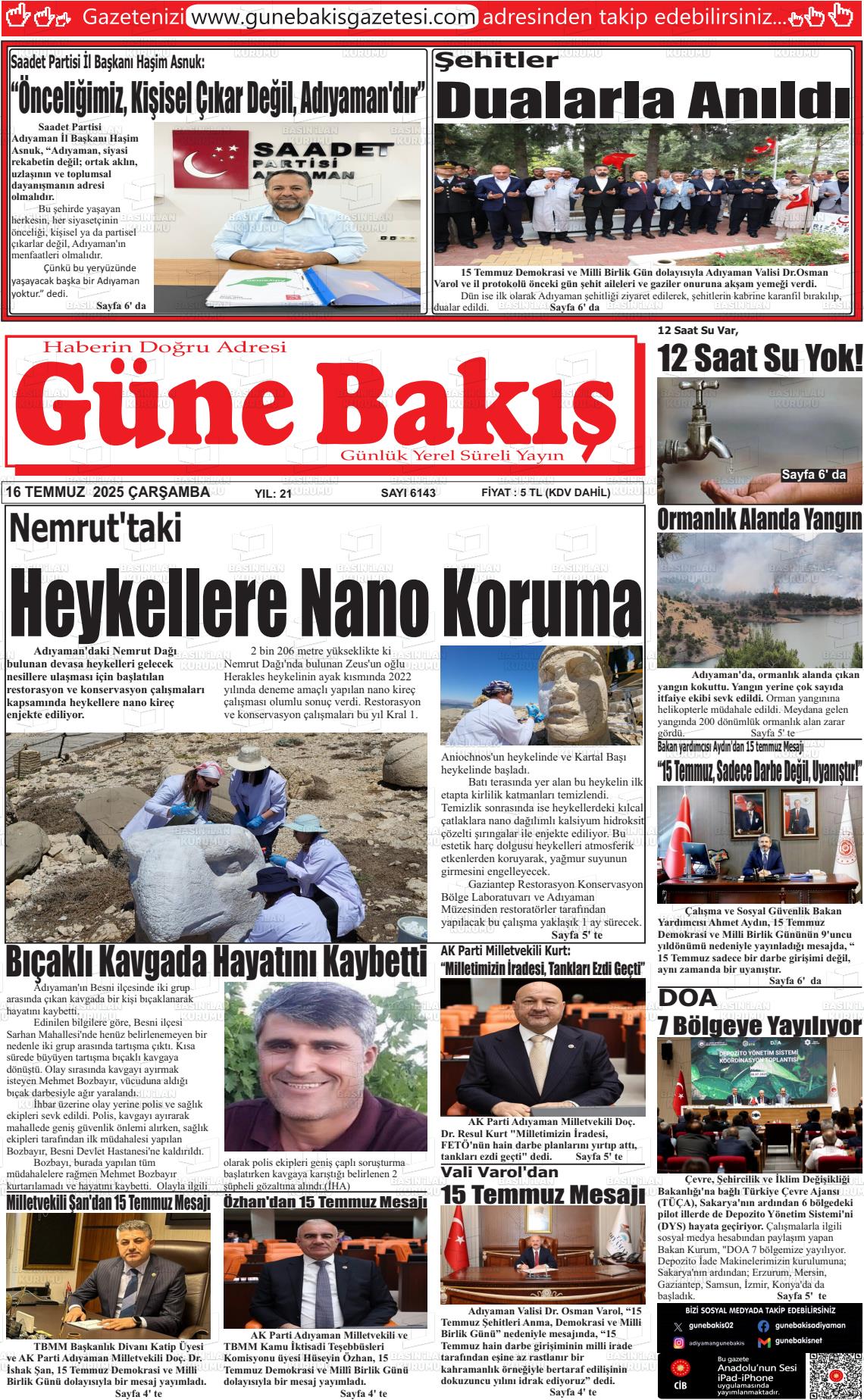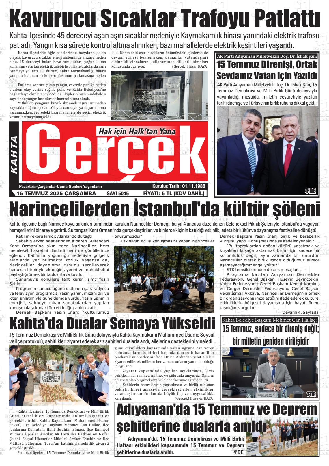 Adıyaman Yerel Gazeteleri 05 Şubat 2026, Perşembe Günü Manşeti