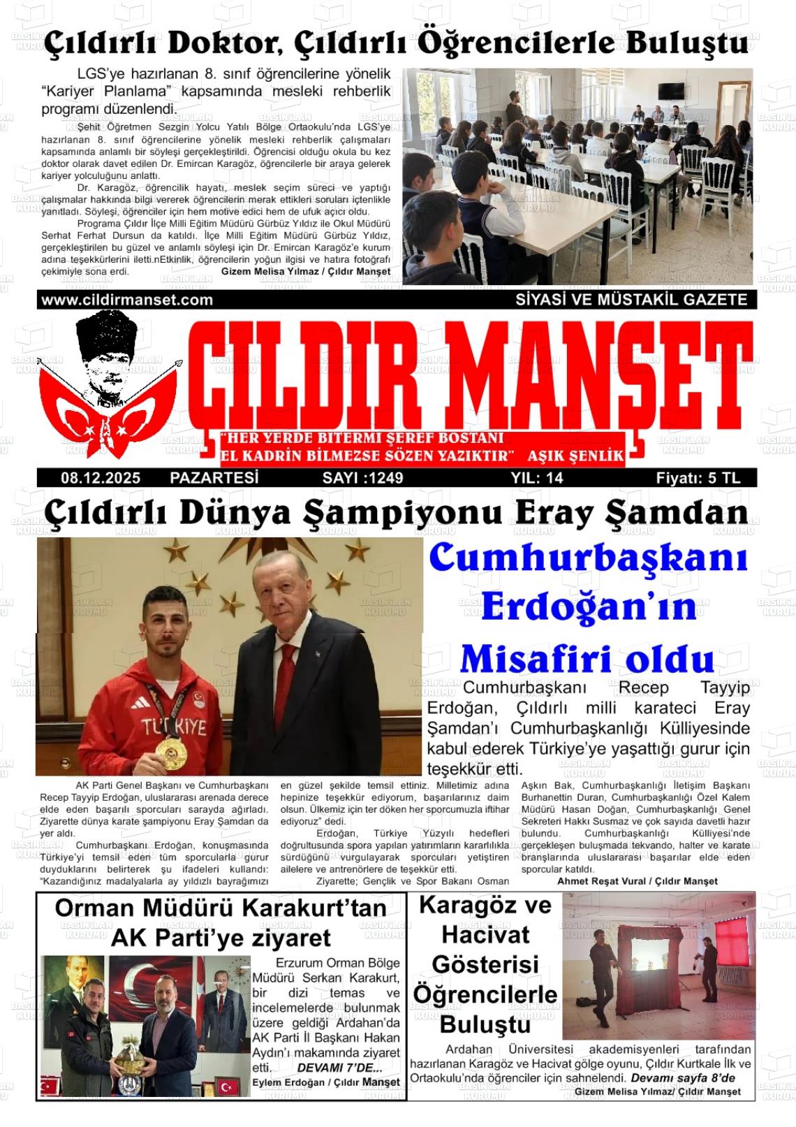 Ardahan Yerel Gazeteleri 09 Aralık 2025, Salı Günü Manşeti