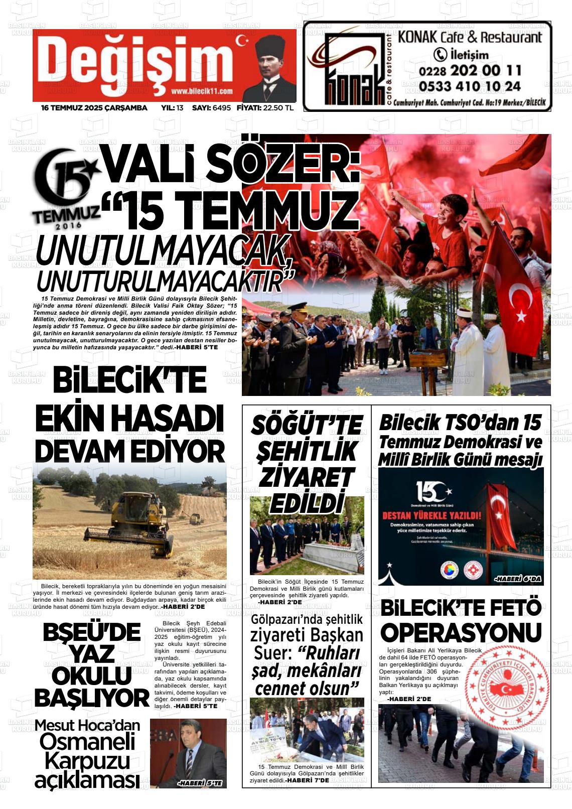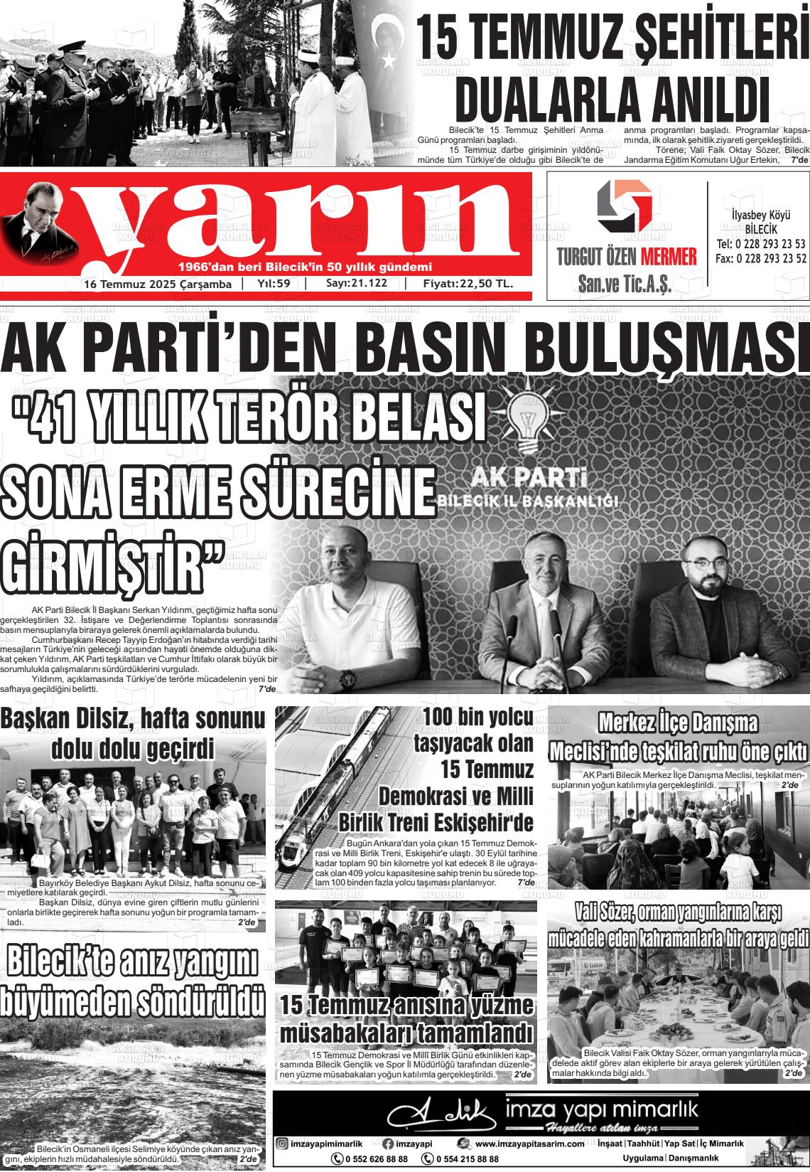 Bİlecİk Yerel Gazeteleri 09 Aralık 2025, Salı Günü Manşeti
