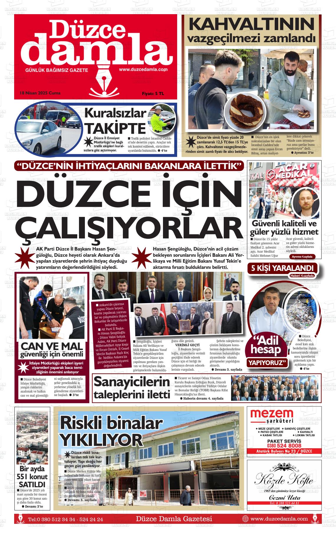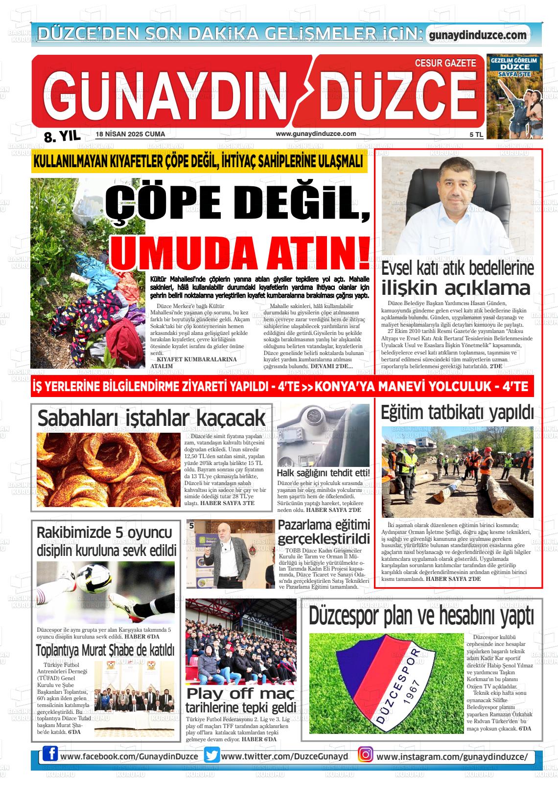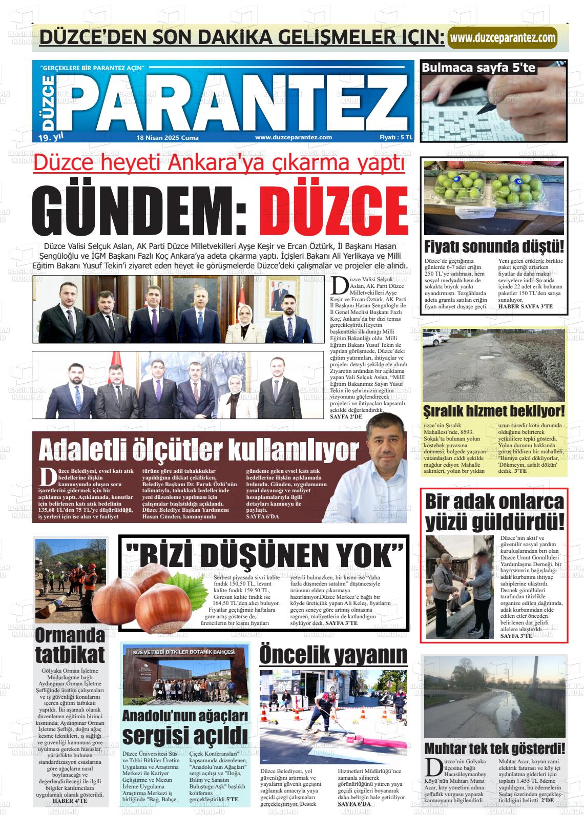 Düzce Yerel Gazeteleri 05 Şubat 2026, Perşembe Günü Manşeti