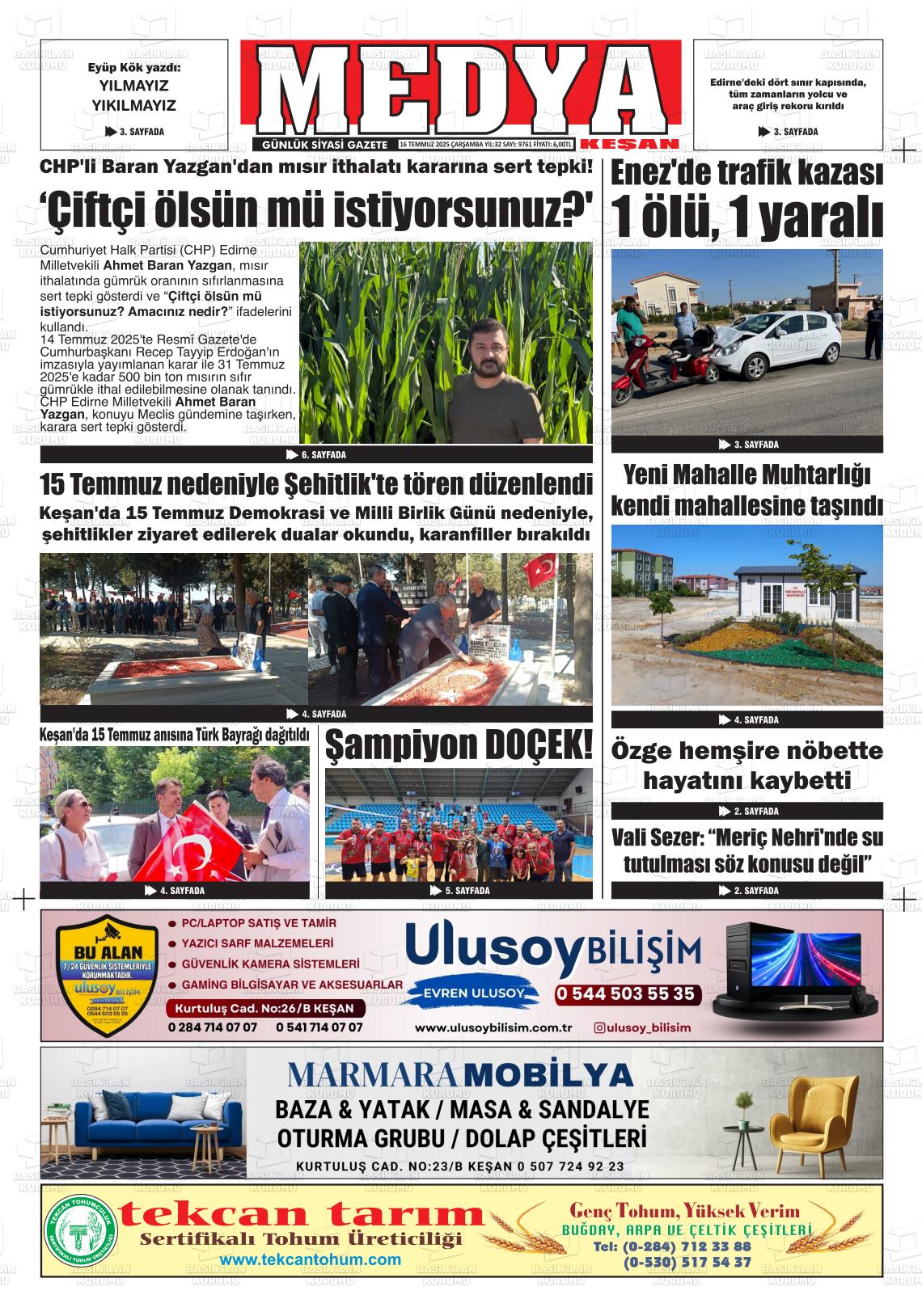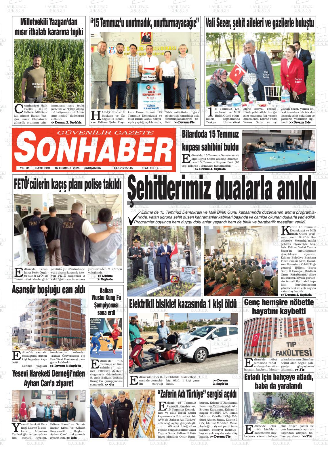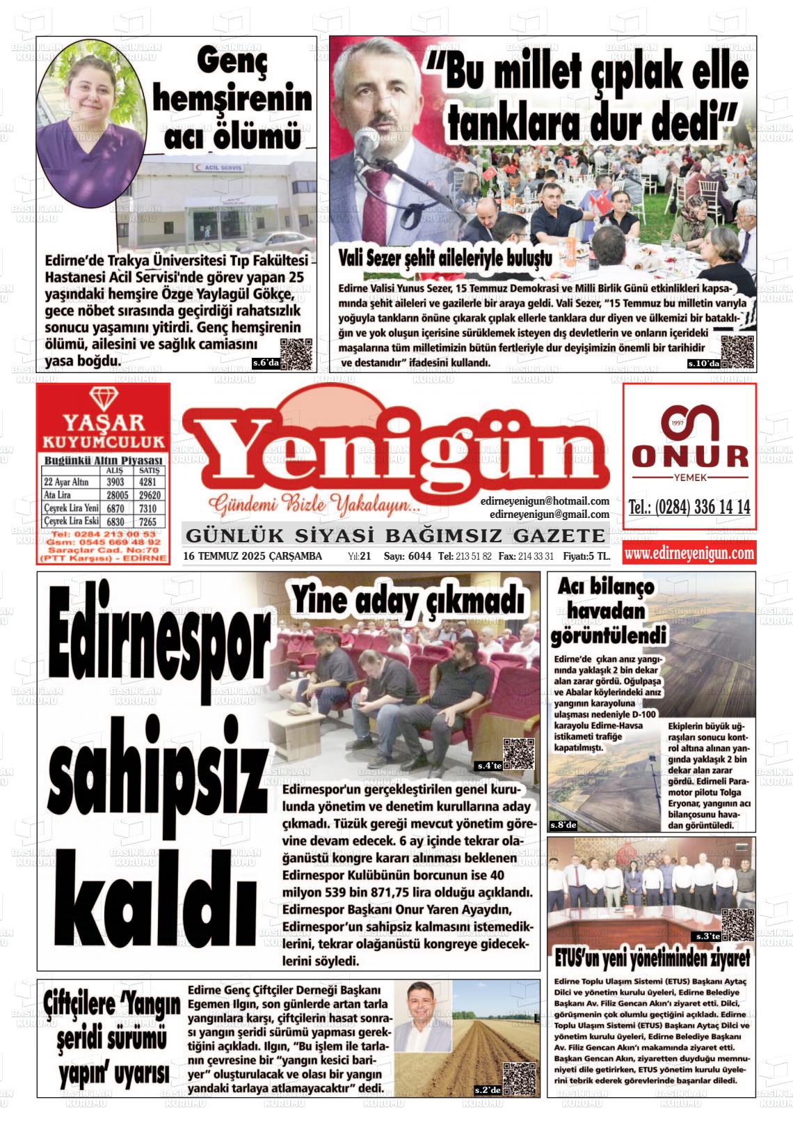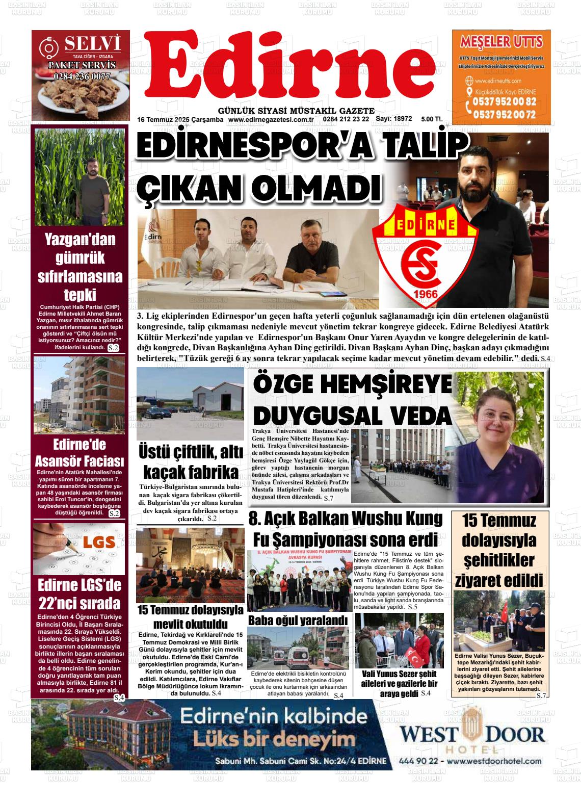 Edİrne Yerel Gazeteleri 05 Şubat 2026, Perşembe Günü Manşeti