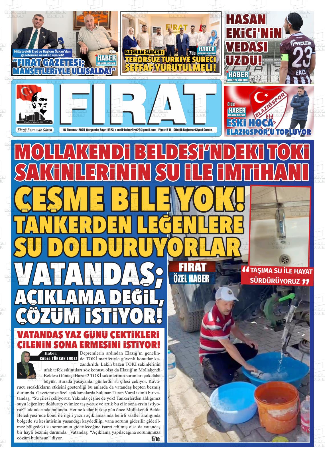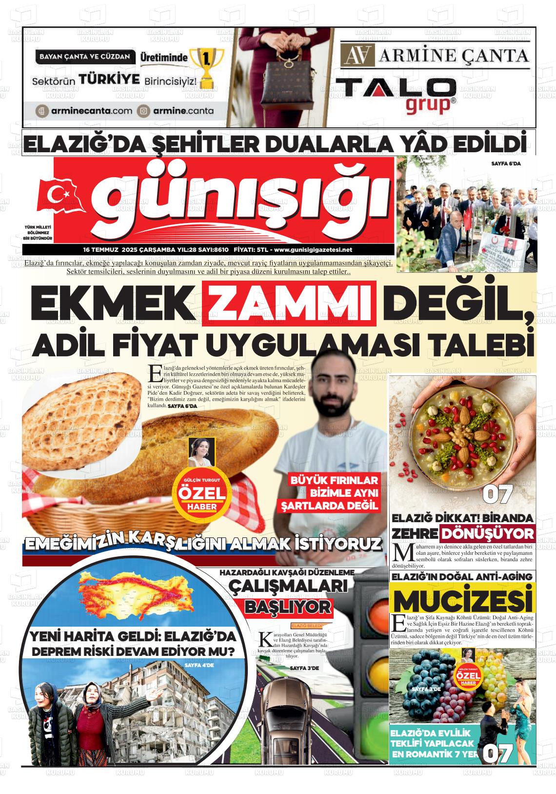 Elazığ Yerel Gazeteleri 06 Şubat 2026, Cuma Günü Manşeti