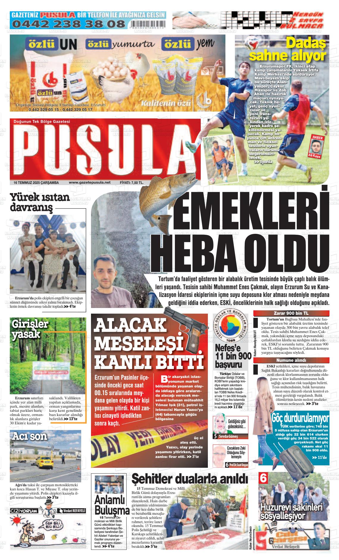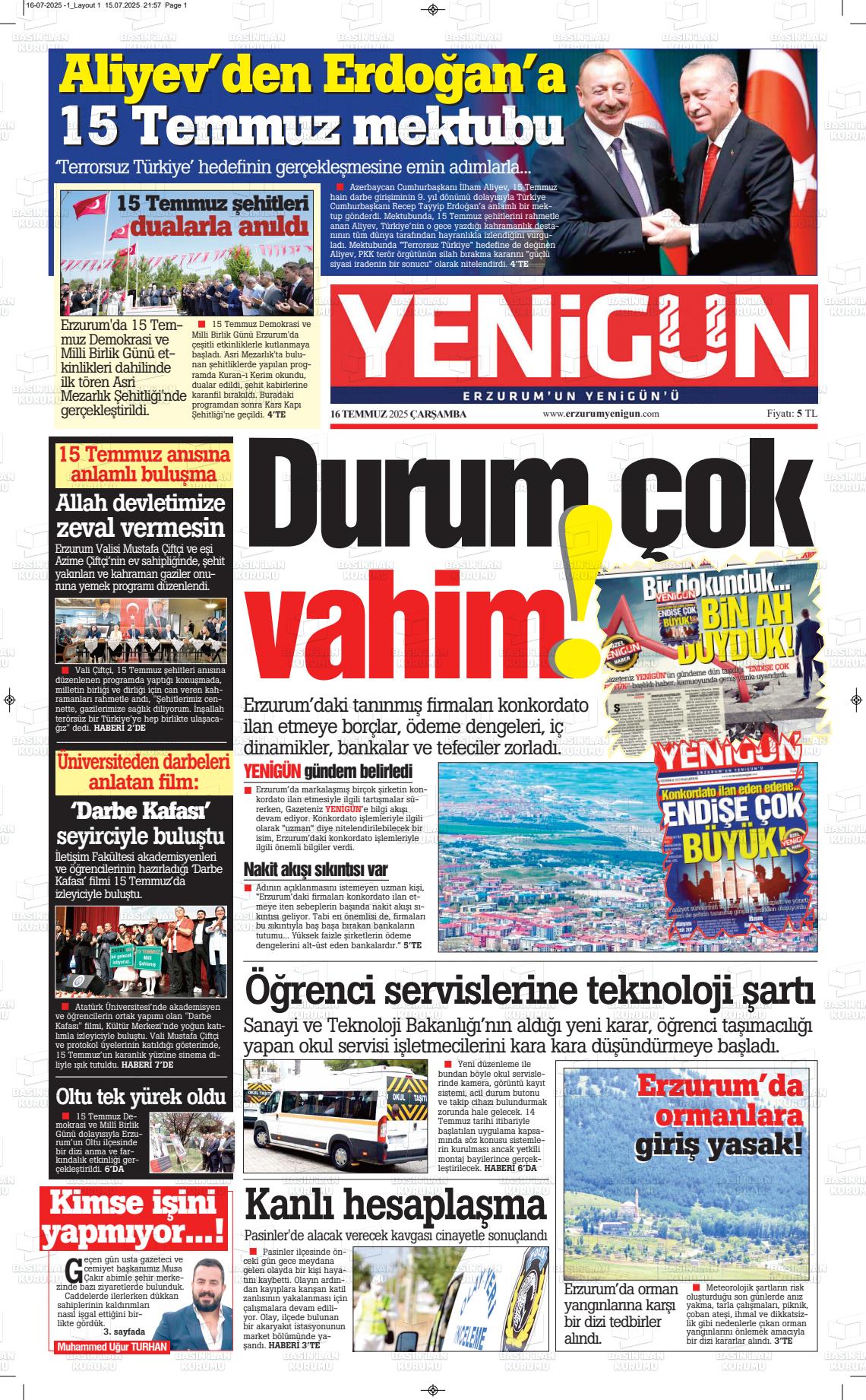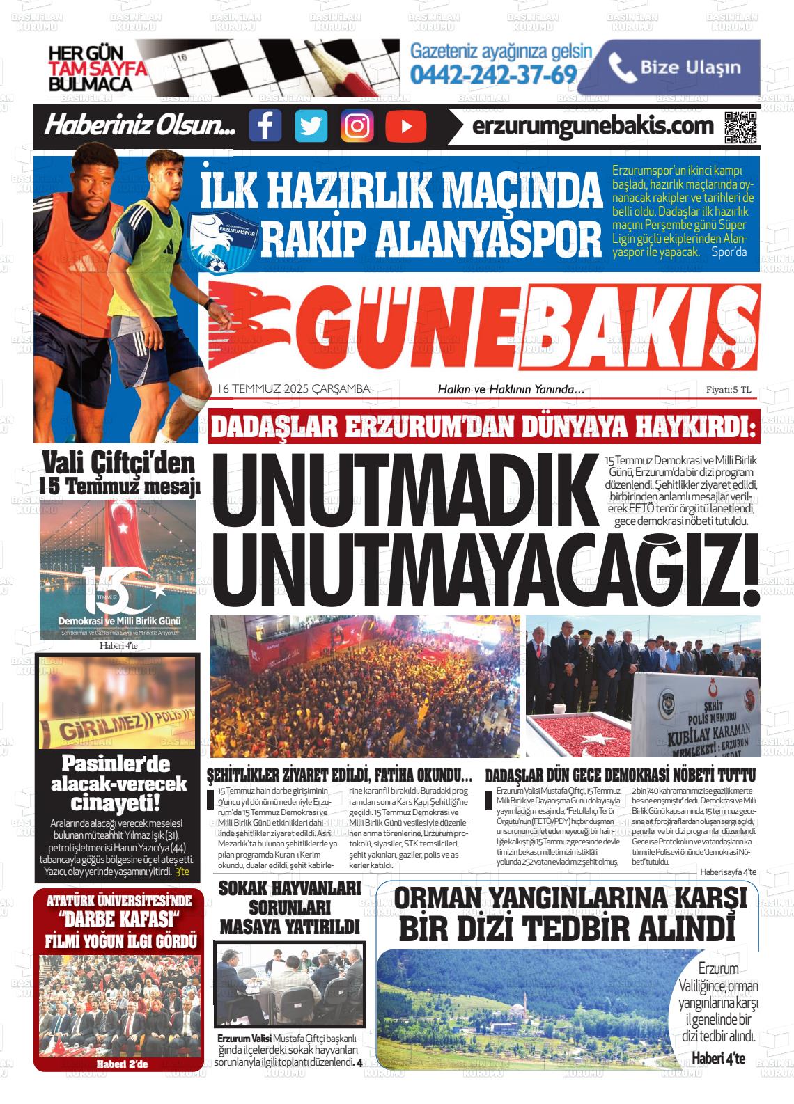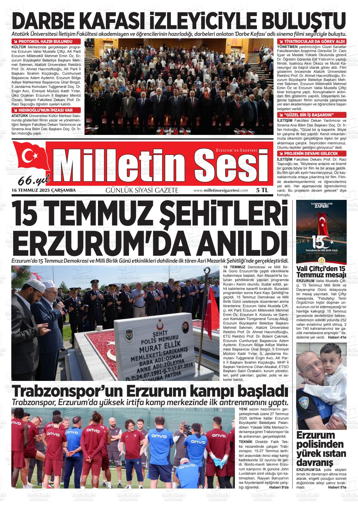 Erzurum Yerel Gazeteleri 05 Şubat 2026, Perşembe Günü Manşeti