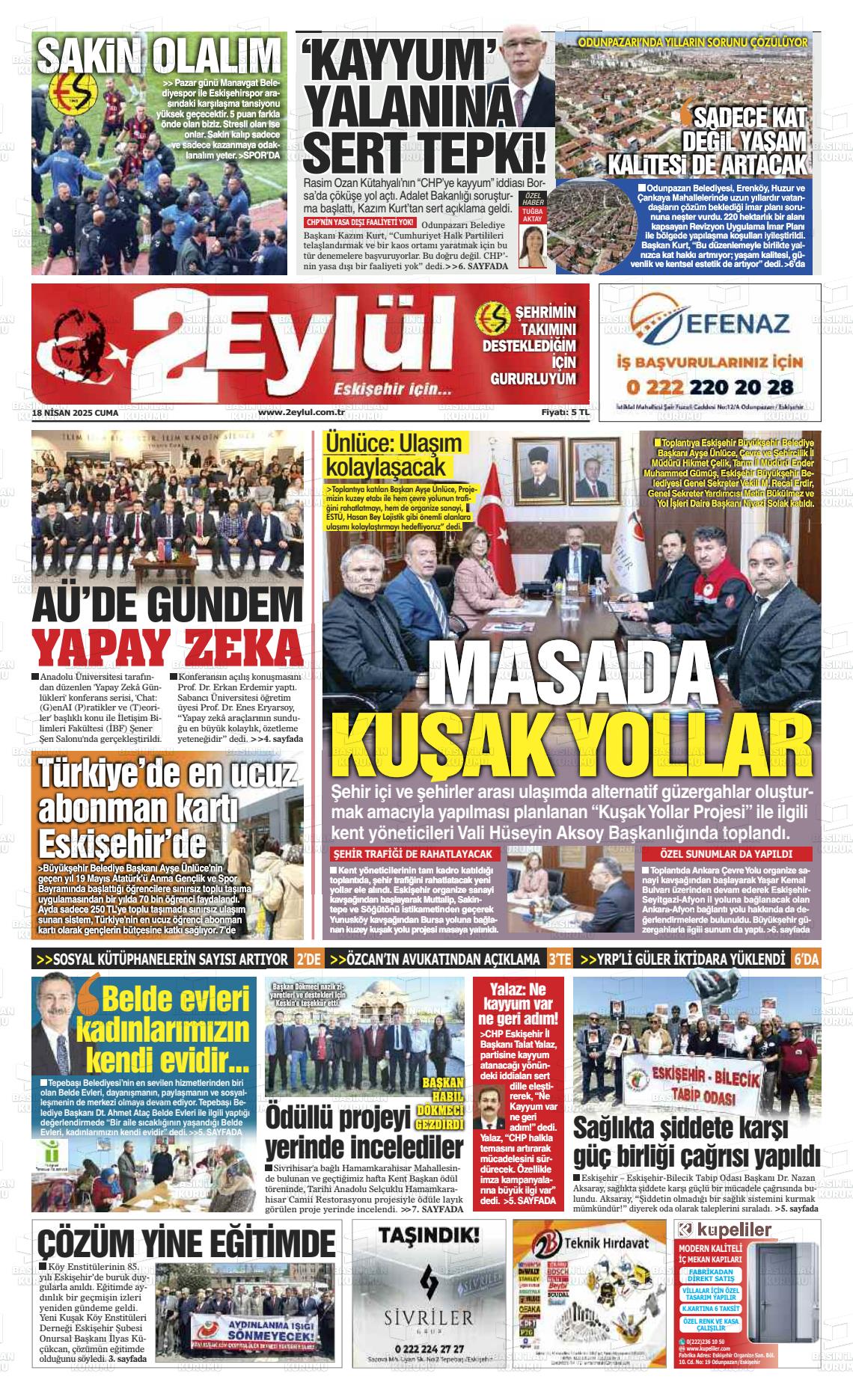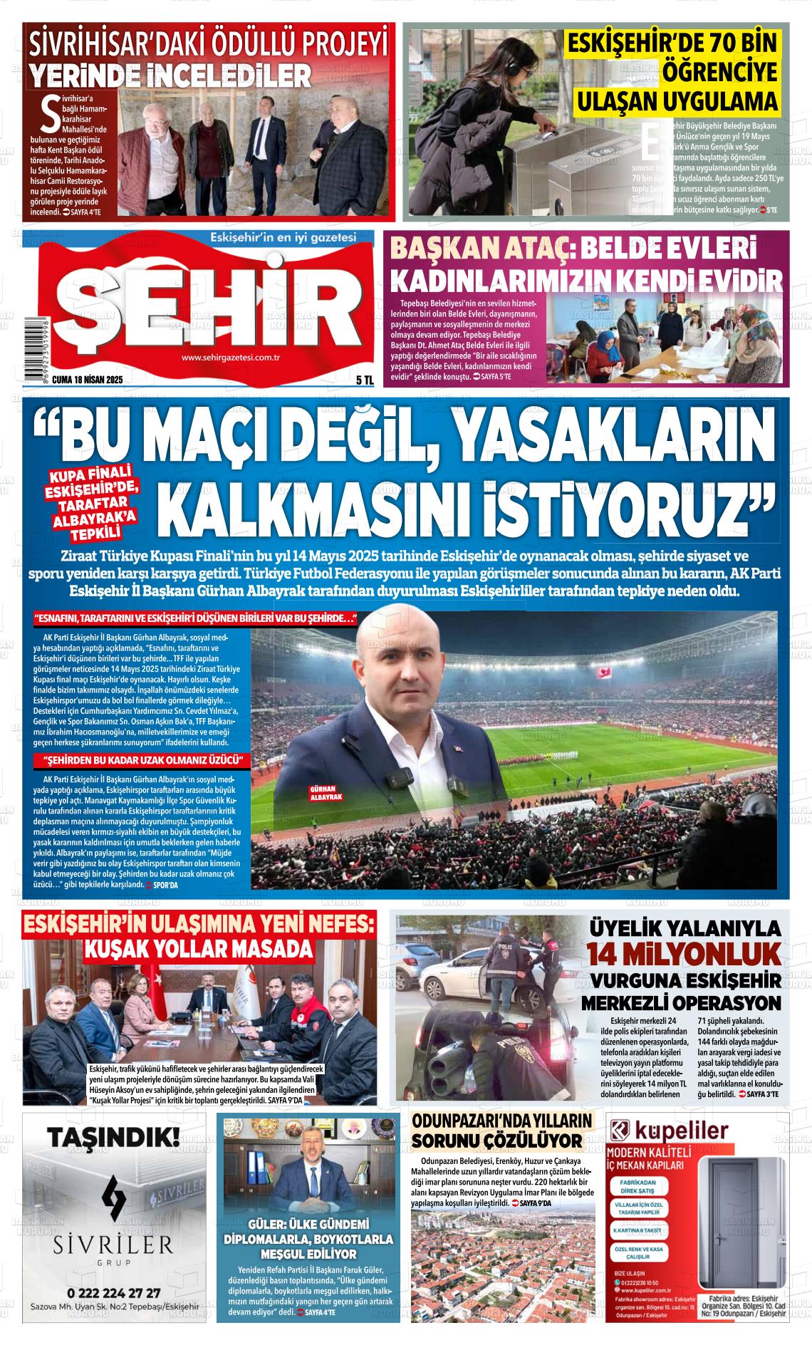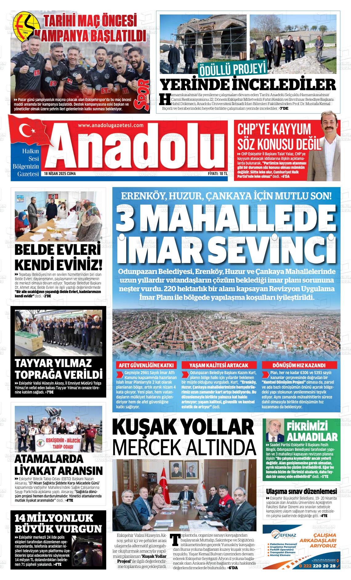 Eskİşehİr Yerel Gazeteleri 08 Aralık 2025, Pazartesi Günü Manşeti