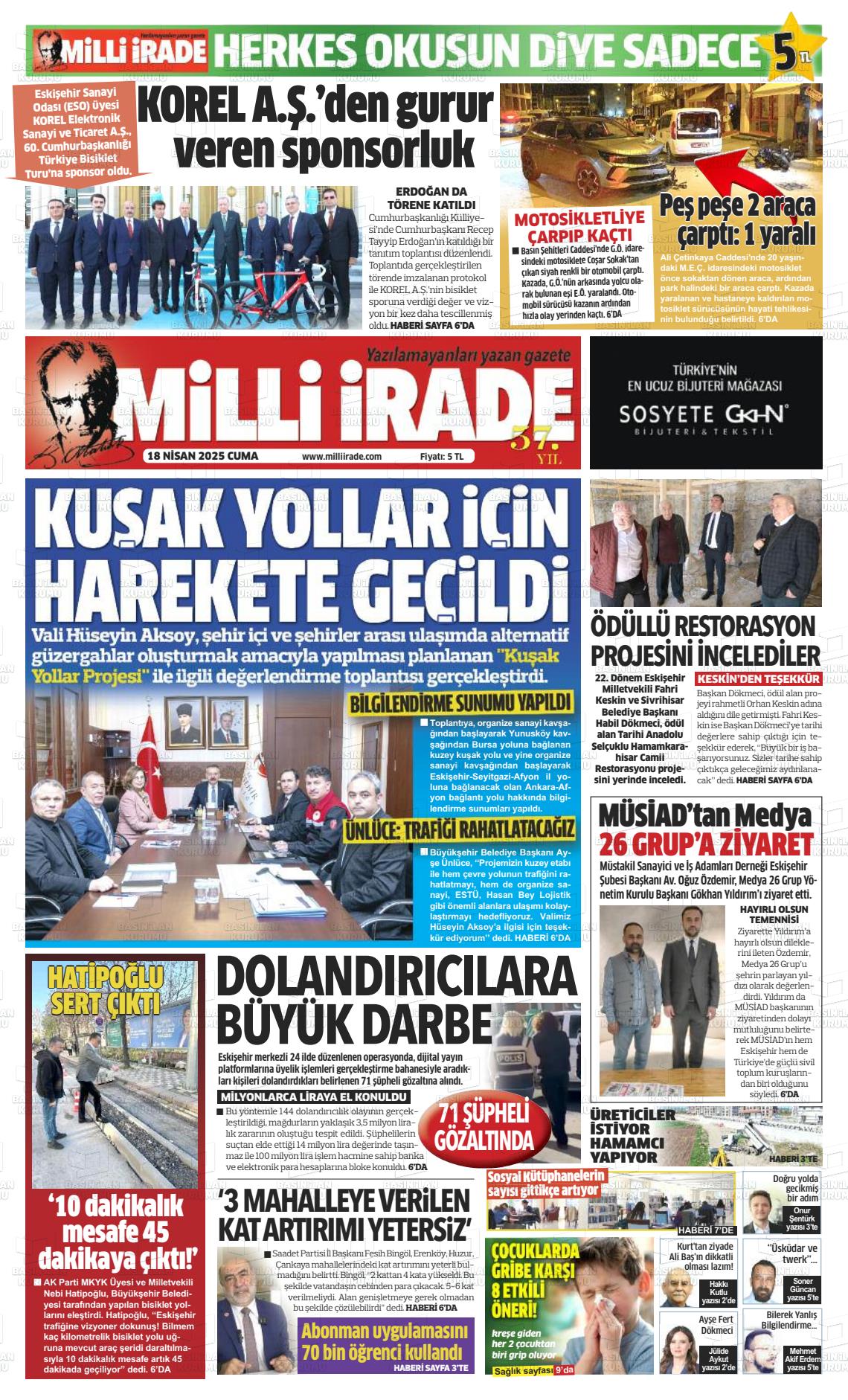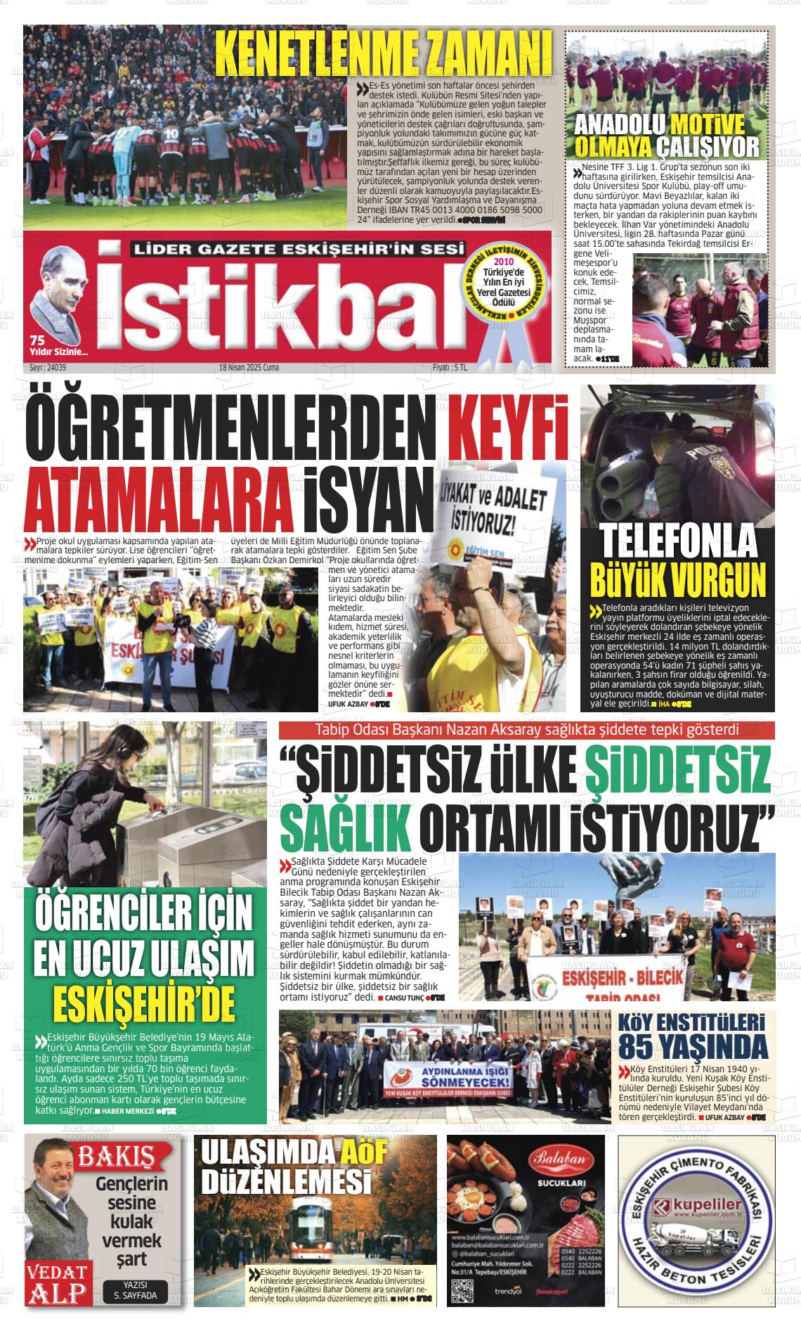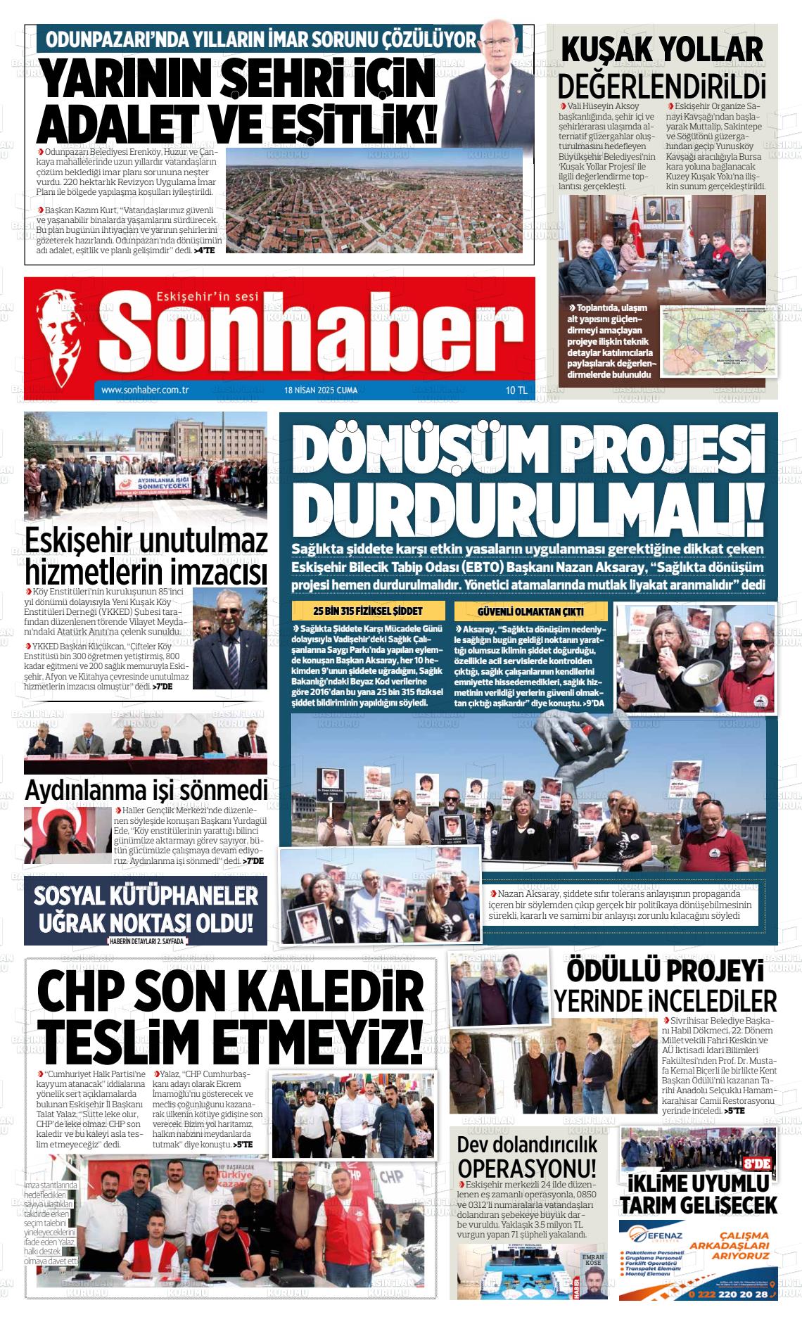 Eskİşehİr Yerel Gazeteleri 08 Aralık 2025, Pazartesi Günü Manşeti