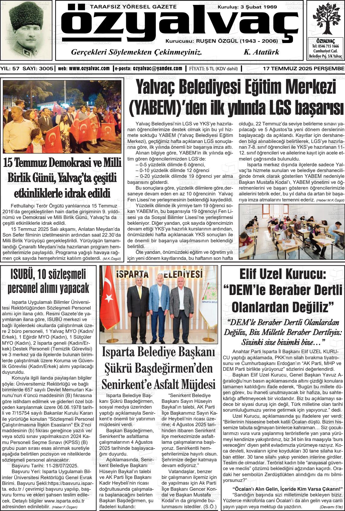 Isparta Yerel Gazeteleri 04 Şubat 2026, Çarşamba Günü Manşeti