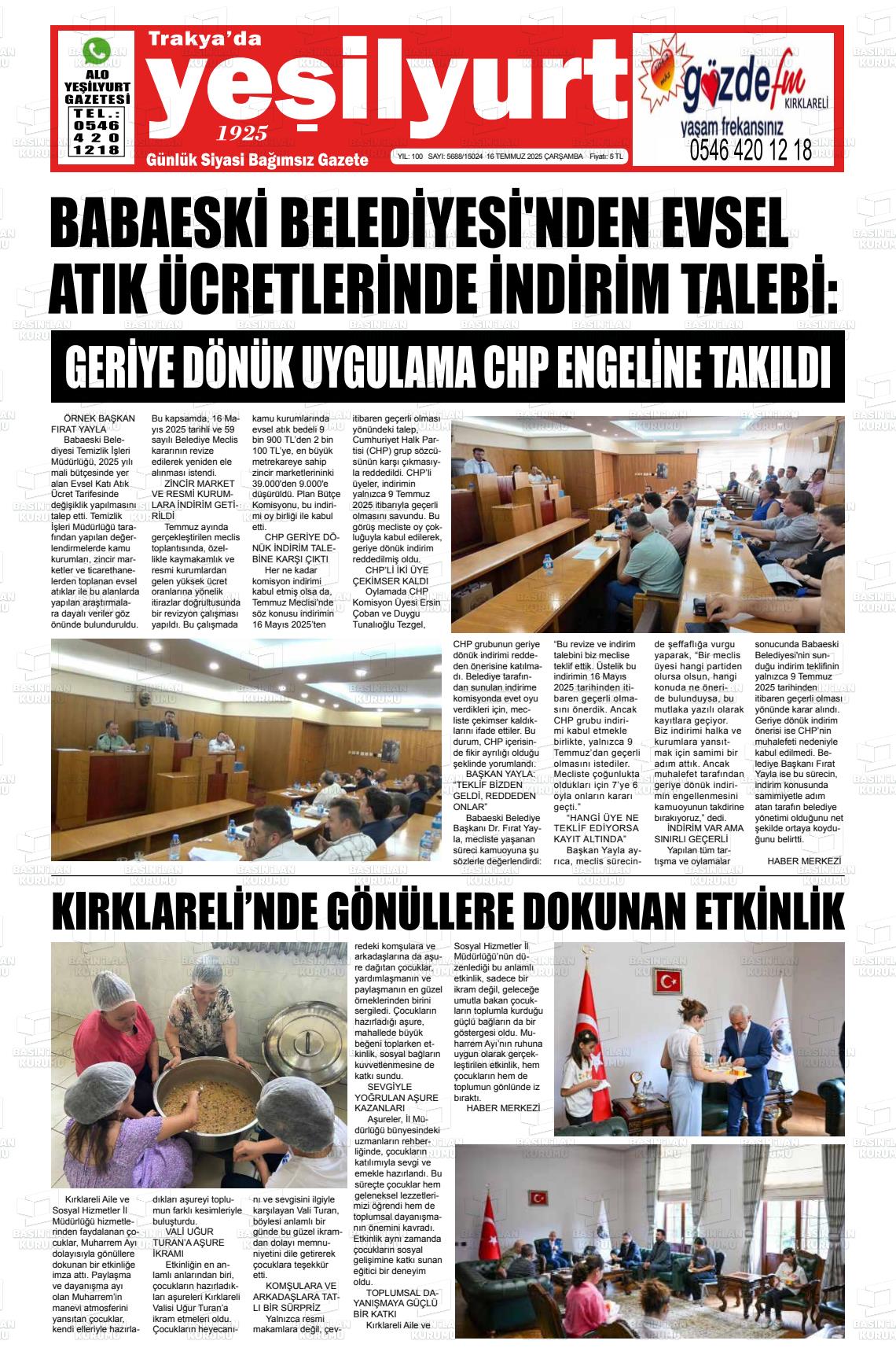Kırklarelİ Yerel Gazeteleri 24 Mart 2026, Salı Günü Manşeti