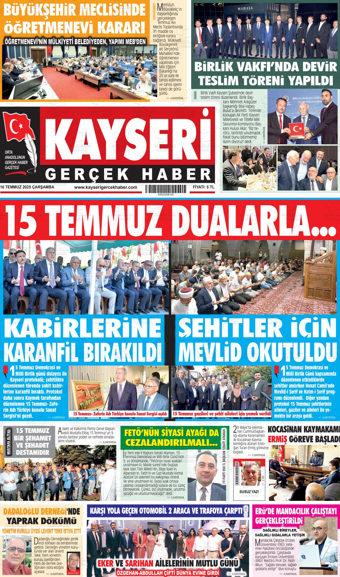 Kayserİ Yerel Gazeteleri 05 Şubat 2026, Perşembe Günü Manşeti