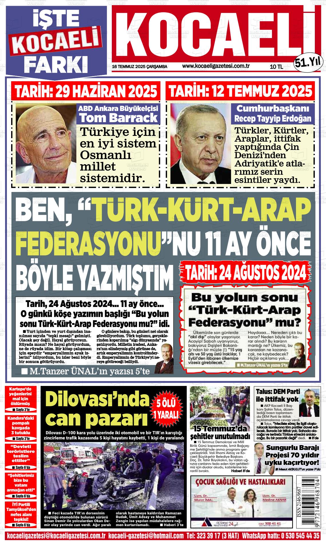 Kocaelİ Yerel Gazeteleri 05 Şubat 2026, Perşembe Günü Manşeti