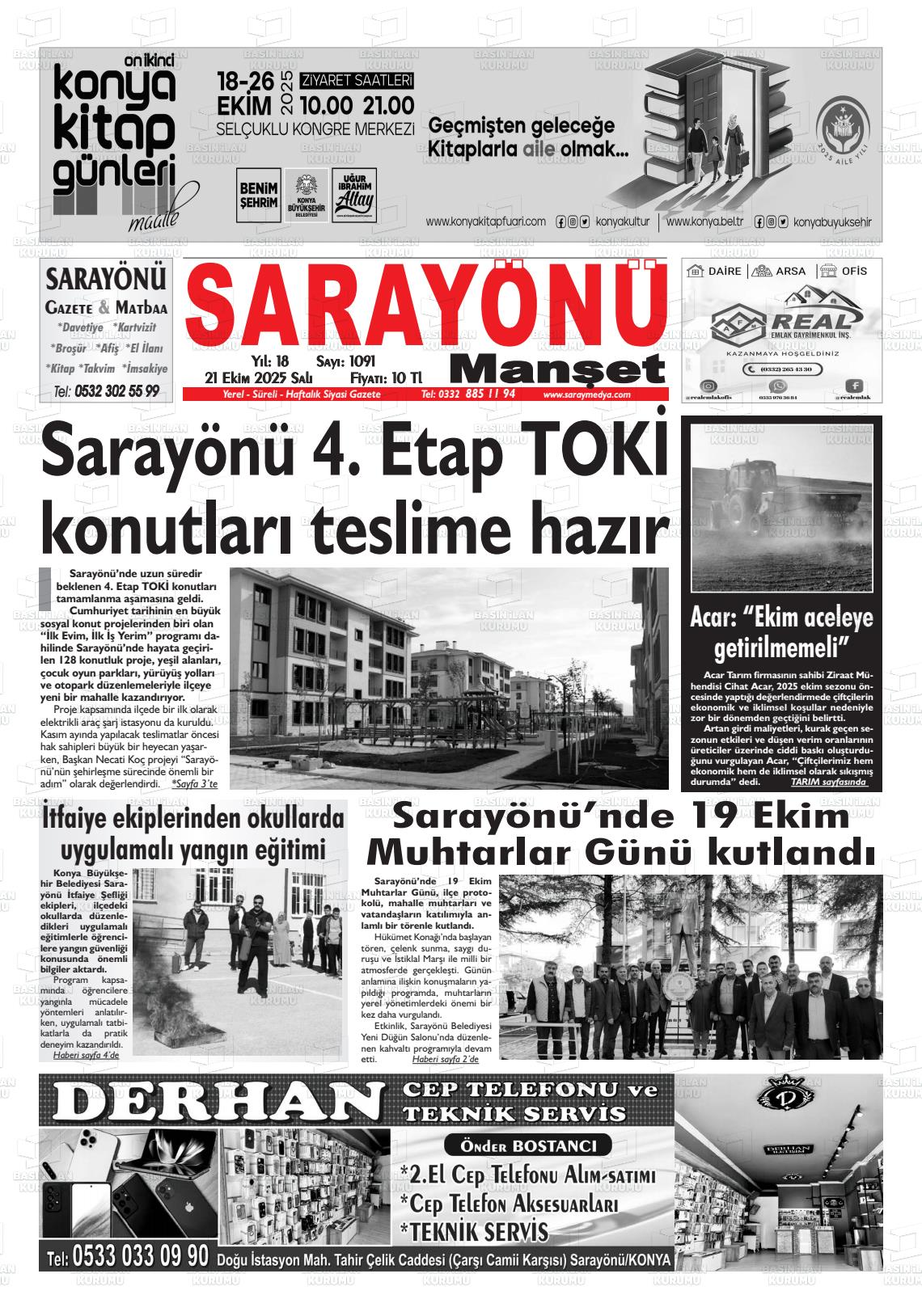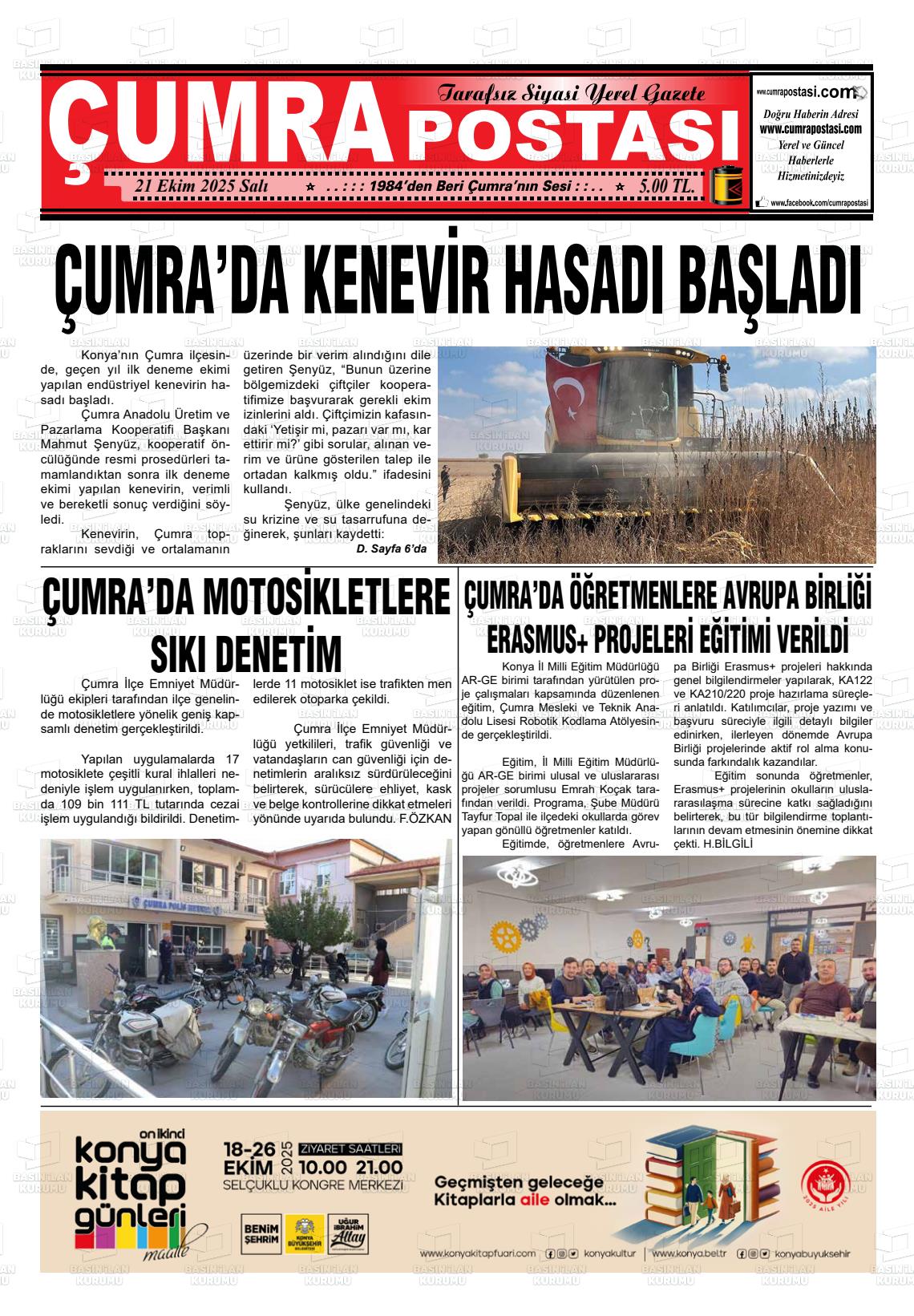 Konya Yerel Gazeteleri 21 Ekim 2025, Salı Günü Manşeti