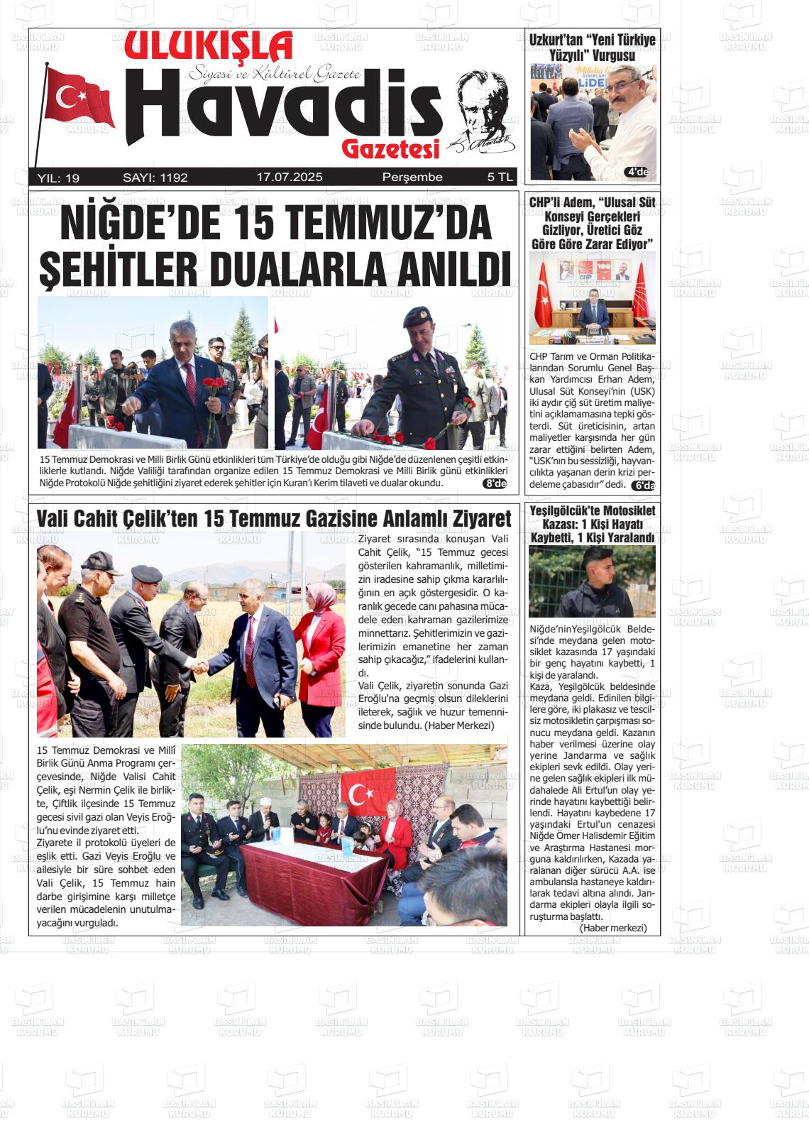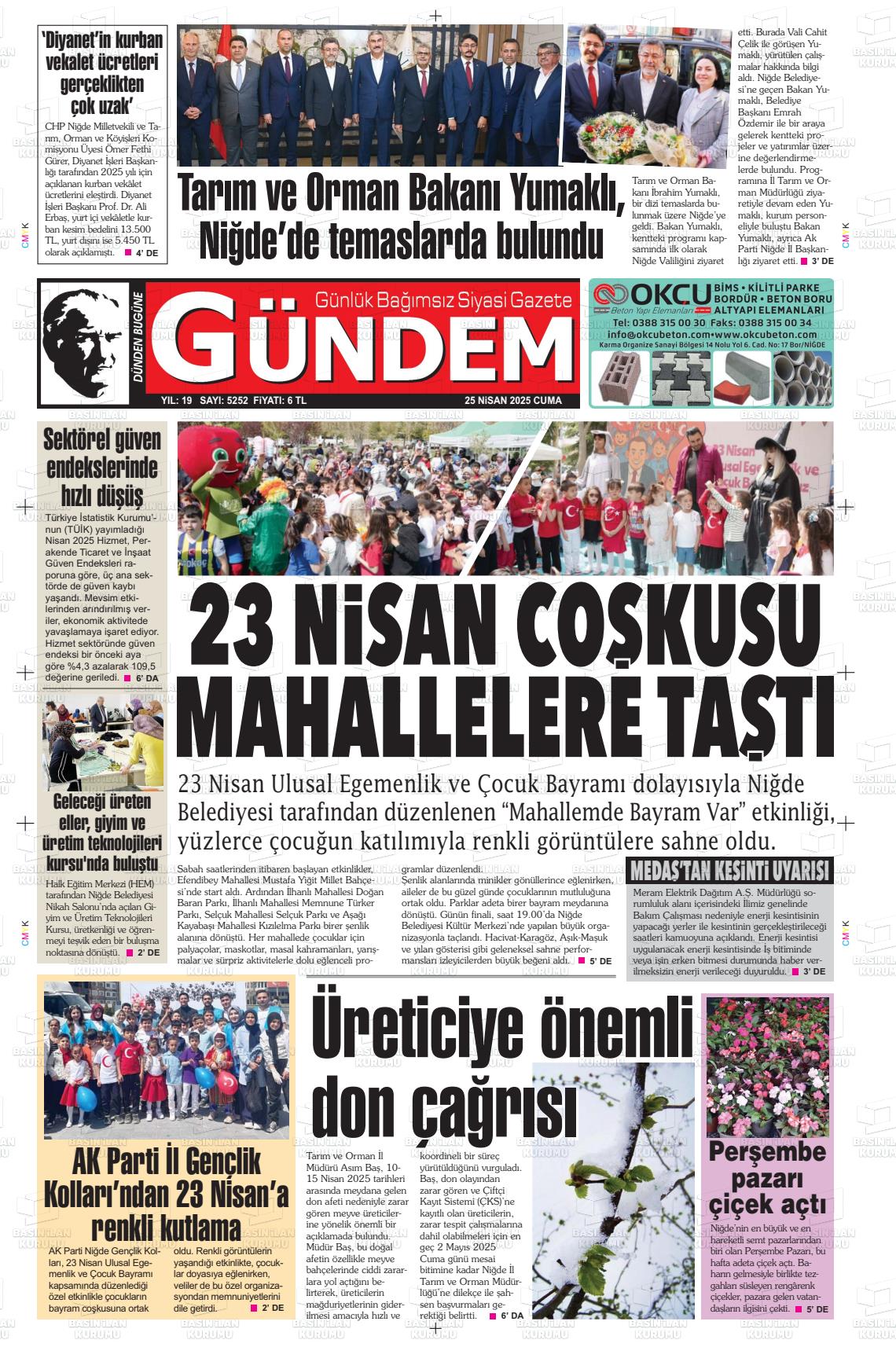 Nİğde Yerel Gazeteleri 05 Şubat 2026, Perşembe Günü Manşeti