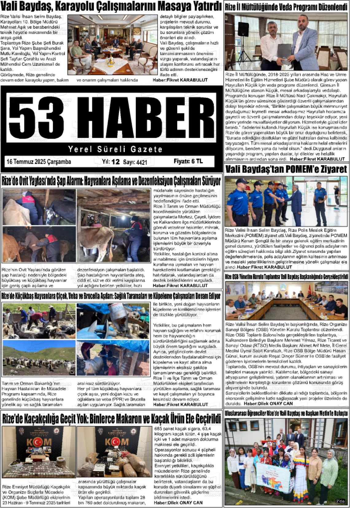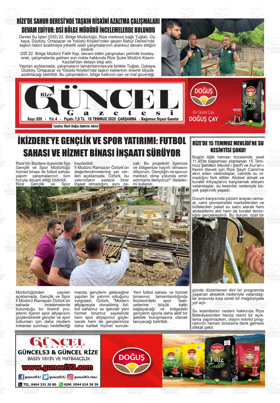 Rİze Yerel Gazeteleri 04 Şubat 2026, Çarşamba Günü Manşeti