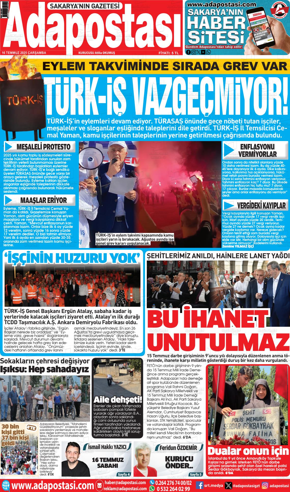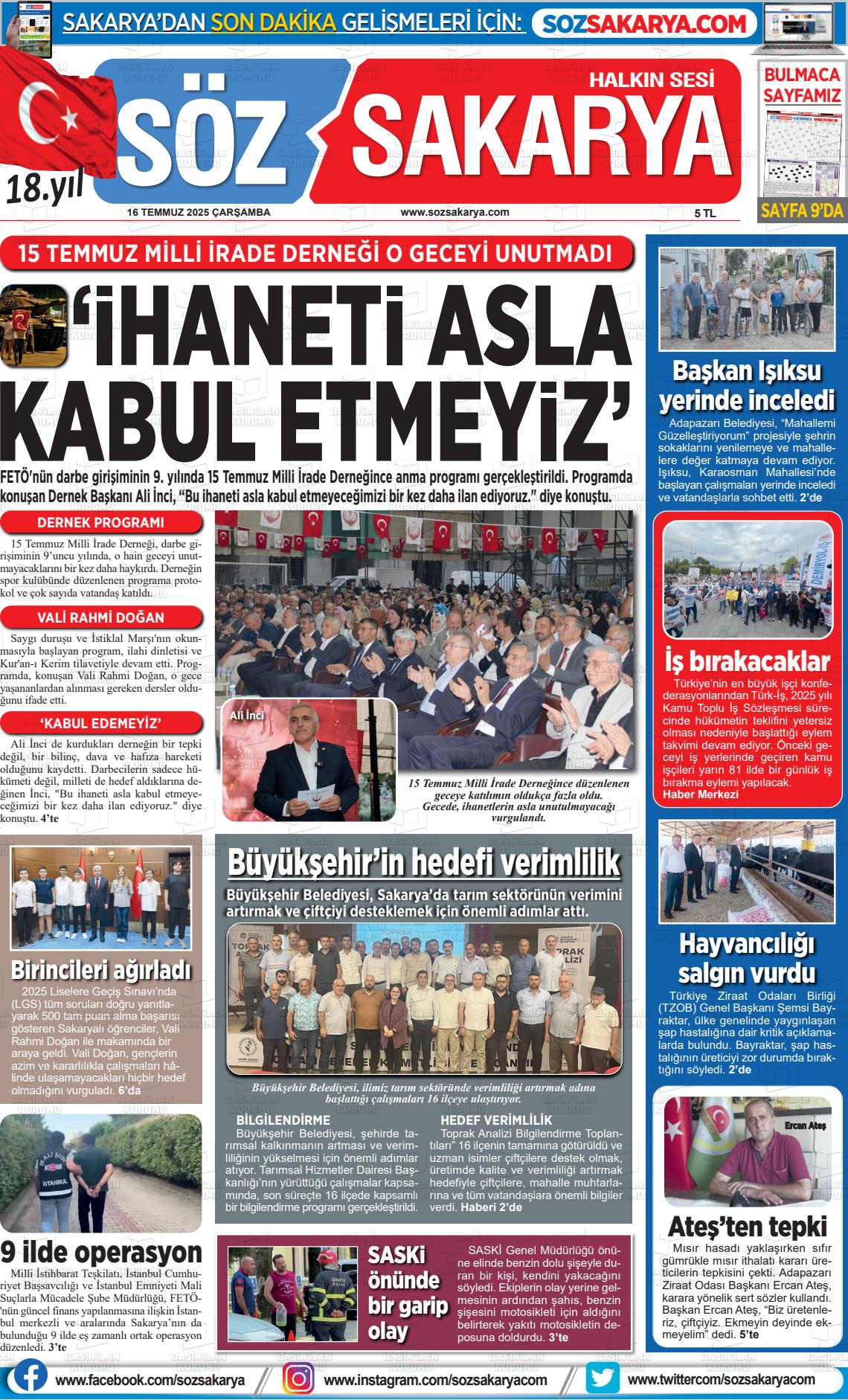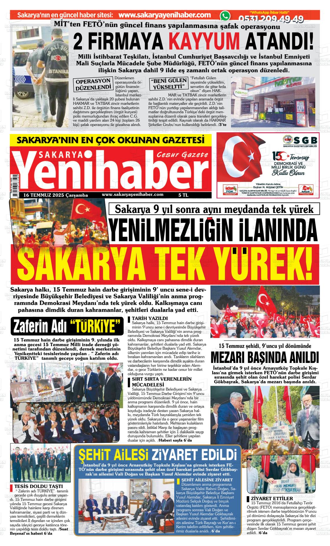 Sakarya Yerel Gazeteleri 05 Şubat 2026, Perşembe Günü Manşeti