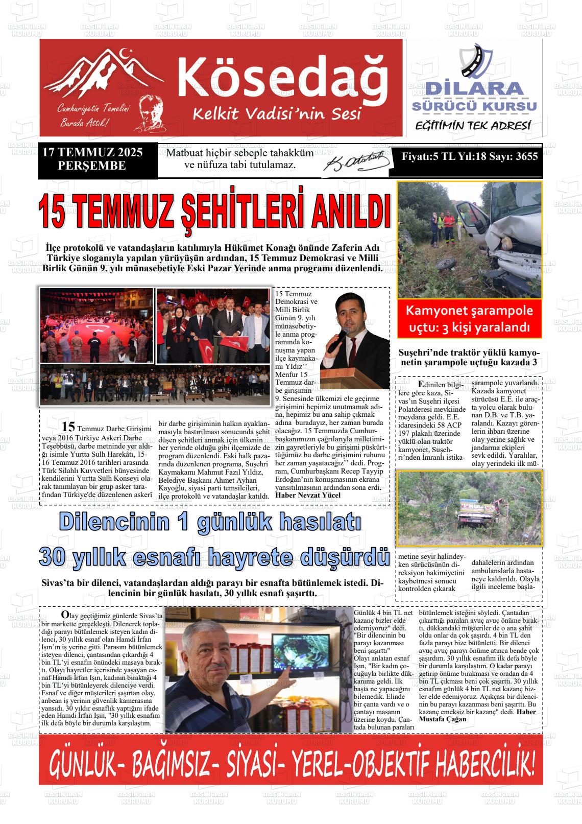 Sİvas Yerel Gazeteleri 24 Mart 2026, Salı Günü Manşeti